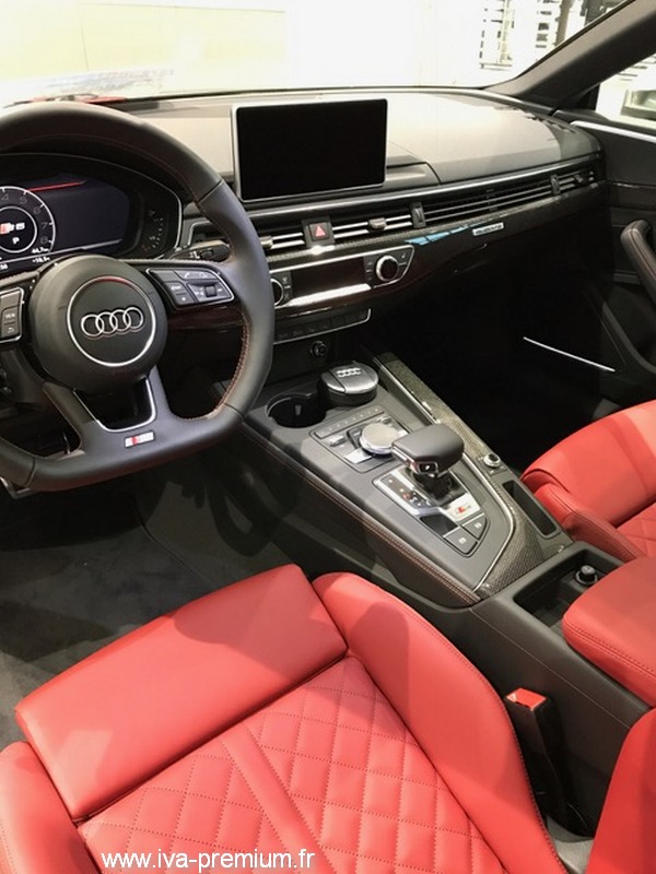 Equipements: 4x4, Boite automatique Tiptronic 8 vitesses, Suspension Sport, Toit ouvrant panoramique, Pack Assistance au Stationnement, Intérieur cuir Nappa, Rétroviseurs extérieurs électriques, chauffants et rabattables avec fonction mémoire, Climatisation automatique 3 zones, Sièges Sport avant, Système son Bang & Olufsen, Audi Connect avec carte SIM intégrée, Audi Smartphone interface, Navigation MMI Plus avec MMI Touch, Affichage tête haute, Clé confort avec système antivol, Homelink, Crochet d'attelage, Phares LED Audi Matrix avec Clignotons dynamiques, Extension de garantie 3 ans 01/2017 6800 km Témoignage du client: Après près de 20 ans de bons et loyaux services, le temps était venu de remplacer notre AUDI A4. Après de multiples discussions, notre choix s'est porté sur la nouvelle AUDI A5 Coupé en version S. Problème : comment faire pour trouver une occasion récente sur un nouveau modèle avec de surcroît une sélection d'options rares ? Réponse : la commander en véhicule de direction et bénéficier d'une importante remise (prix du neuf plus faible en Allemagne + remise VD). Ce fut possible grâce à Eva qui est partie à la recherche d'un concessionnaire allemand acceptant la démarche. Pour pouvoir l'importer en occasion, il faut attendre six mois et 6000 km, mais le jeu en vaut la chandelle : https://www.iva.preprod-ni.fr/audi-s5-3-0-tfsi-quattro-354-ch/ C'est notre deuxième achat par l'intermédiaire d'Eva (S7 en 2013), et ce fut une nouvelle fois un plaisir de traiter avec une véritable professionnelle de la transaction automobile : disponible, réactive, compétente et... charmante !